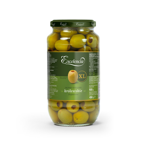 Королевские зеленые оливки XL без косточек в маринаде с морской солью.