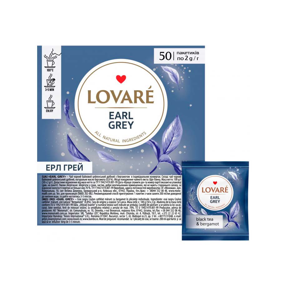 LOVARE Чай черный фруктовый "Эрл Грей"100г (50 пак. по 2 г)