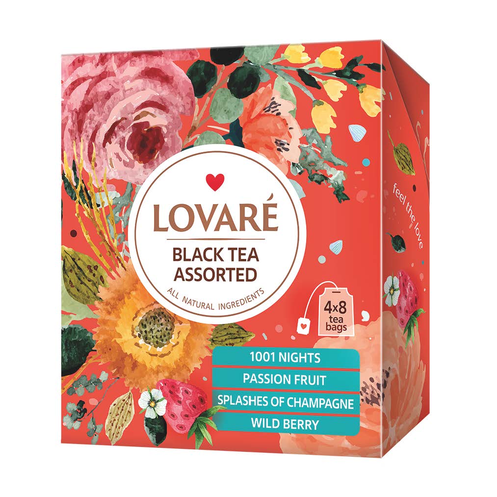 LOVARE Чай в пакетиках черный фруктовый ягодный Ассорти 64г ( 32 ф/п по 2г)