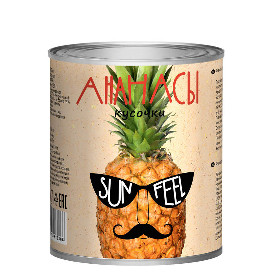 Ананасы Sunfeel нарезаны на кусочки и законсервированы для сохранения свежего вкуса и экзотического аромата.