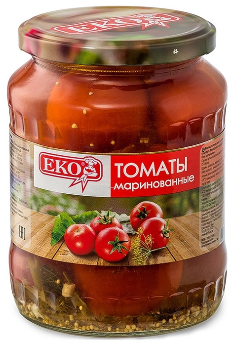 Маринованные томаты ЕКО производятся из сочных и спелых плодов, выращенных на полях Краснодарского края.