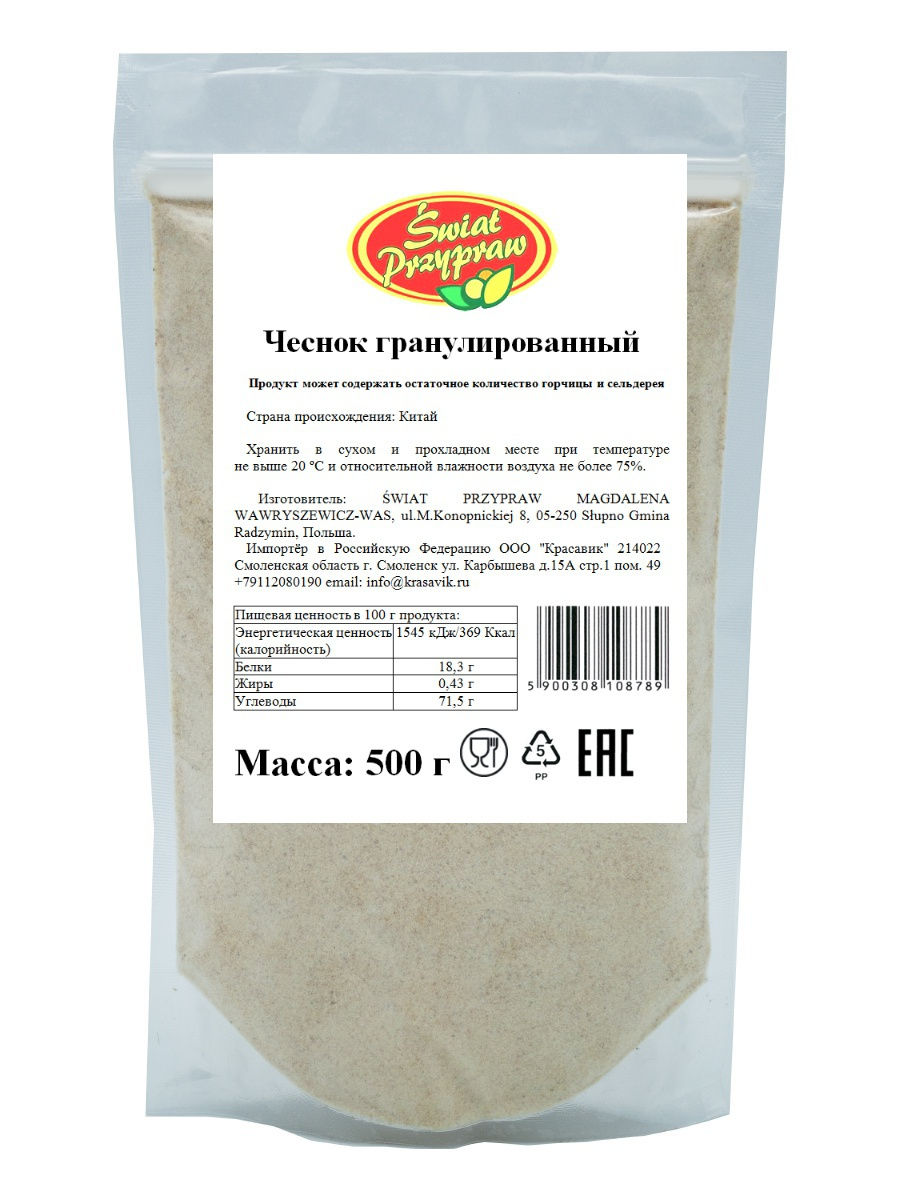 Swiat Przypraw Чеснок гранулированный 500г