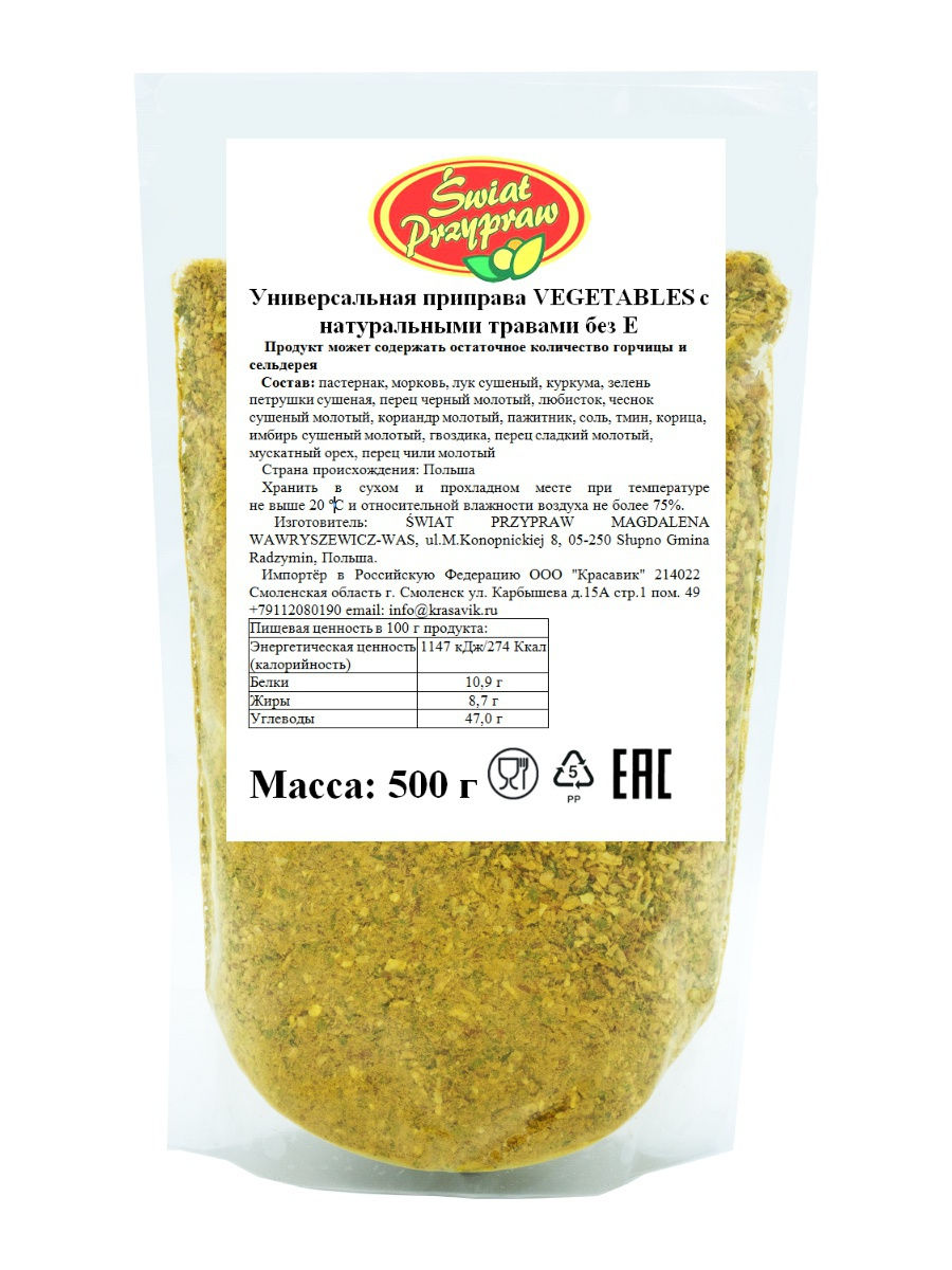 Swiat Przypraw Универсальная приправа VEGETABLES с натуральными травами без Е 500г