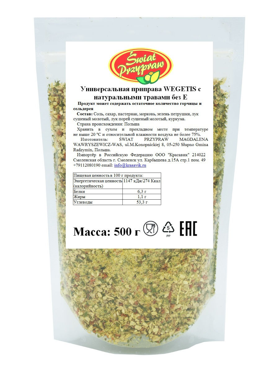 Swiat Przypraw Универсальная приправа WEGETIS с натуральными травами без Е 500г